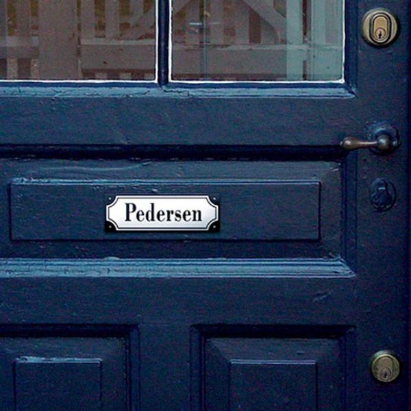 Navneskilte er små og personlige skilte som ses på nært hold og vidner om ejerens sans for detaljen. Personlige emaljeskilte er ikke blot informative, men udgør også et sammenhængende dekorativt element. Vores blanke og autentisk udformede navneskilte er egnede til både udendørs brug og interiør. Ofte ses vores navneskilte monteret på døre, porte, postkasser og i indgangspartier, hvor de er "prikken over i'et".