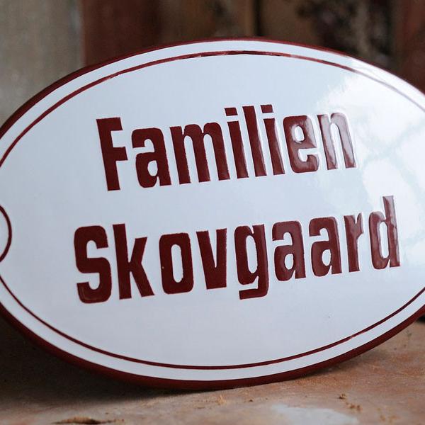 Traditionen at navngive et hus eller en ejendom er udbredt over hele kloden; i Danmark er emaljeskilte ofte brugt til at angive navnet på en villa eller et landsted. Vores personlige navneskilte fås i en række størrelser, og kan komfortabelt passe til til et familienavn, et husnavn eller anden tekst, der er specifik for en bolig eller ejendom. De største navneskilte i sortimentet er velegnede til haven og indkørslen vor de er synlige på lang afstand.